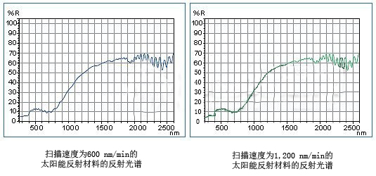 在秉承U-4100型光學系統高性能的同時,UH4150提供更高通量的測定。之前型號的儀器在1 nm數據間隔下測定時,掃描速度必須是600 mm/min。UH4150型可在1,200 nm/min的掃描速度下以1 nm的間隔進行測定,顯著縮短測定時間。*5 UH4150在約2分鐘內可從240 nm測定到2,600 nm。對需要在紫外-可見-近紅外波長范圍內測定的樣品,如太陽能反射材料,尤其有效。