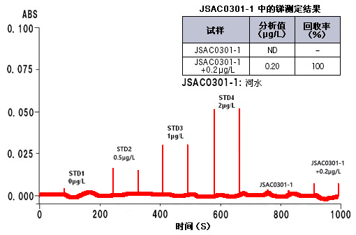 無爐內(nèi)濃縮時,雙進樣功能可測量到的銻元素濃度值為0.2 ppb。