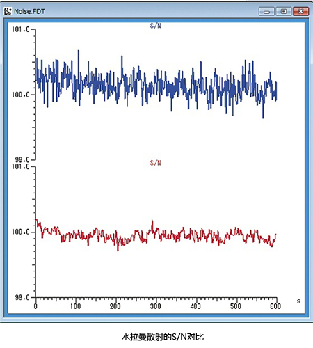通過與前代機型的水拉曼散射S/N對比,F-4700靈敏度是前代機型的2倍,即使是微弱的信號,也能實現低噪聲檢測。
