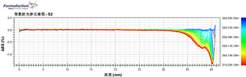 將得到的透射光或背散光的數據。第一次掃描為藍色,最后一次掃描為紅色。為了更好的看變 化,透射光或背散光的數據都被設置為參比模式,即以第一條線為參比,其余的線都和他相比較。 光強增加是正值,光強降低為負值。