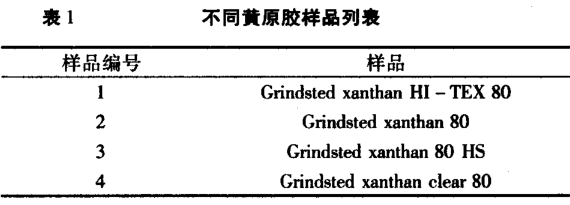 試驗樣品均來自丹尼斯克公司格林斯德系列黃原膠,見表 1。