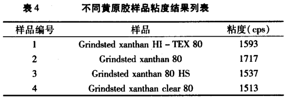 1%黃原膠溶于 1% 氯化鉀溶液,25℃,粘度測試結果,見表 4。