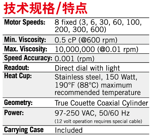 適合于生產現場和實驗室應用,測量常壓下鉆井泥漿和壓裂液的粘度