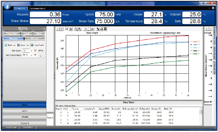 RheocalcT軟件可以用來分析數(shù)據(jù),生成多層圖形,打印數(shù)據(jù)列表,運行數(shù)學模型以及一些其他的省時省力的例行功能。可繪制并保存高達5組的比較數(shù)據(jù)另外、還包括以下特點: