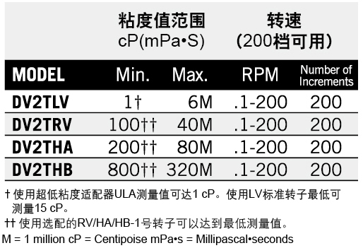 自動量程顯示:當前轉子及轉速組合下的最大測量粘度