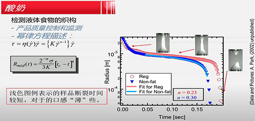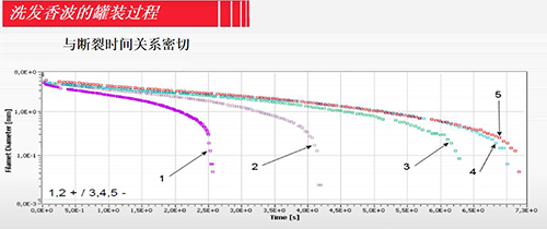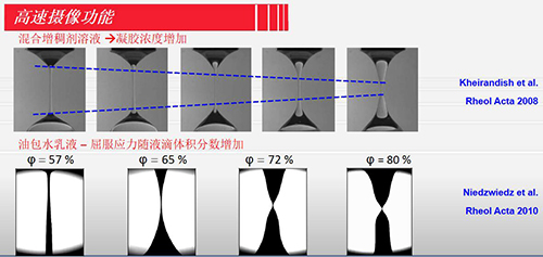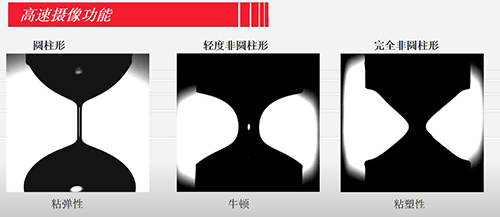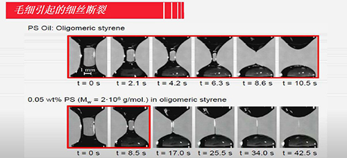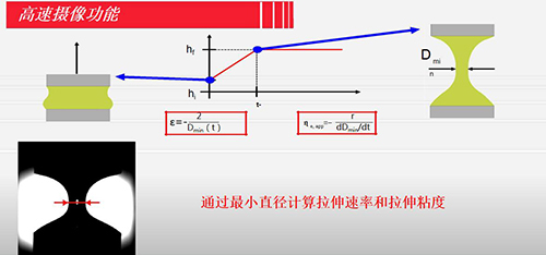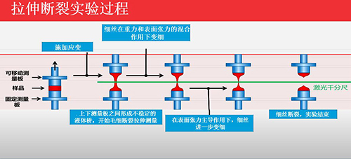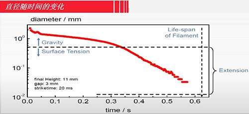 研究中低粘度流體或半固體在拉伸作用下,其細絲直徑隨時間的變化過程。