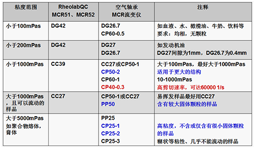 轉子的測量范圍既與轉子的大小、形狀有關,也與流變儀主機的扭矩范圍有關,同時還與需要達到的剪切速率、應變等條件有關,所以每個轉子的測量范圍由這幾個方面決定,都必須考慮,流變儀軟件中可以計算轉子的理論測量范圍,結果實例如下,在 MCR102 流變儀上,