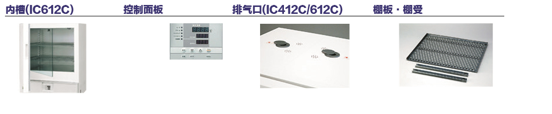 棚板(1件棚板包含2件棚受)、引線孔(30/50mm)、記錄儀、組合警示燈(待機/運行/故障)、觀察窗、外部通信功能 (RS485)、溫度輸出端子(4~20mA)、外部警報輸出端子、時間到達輸出端子 |