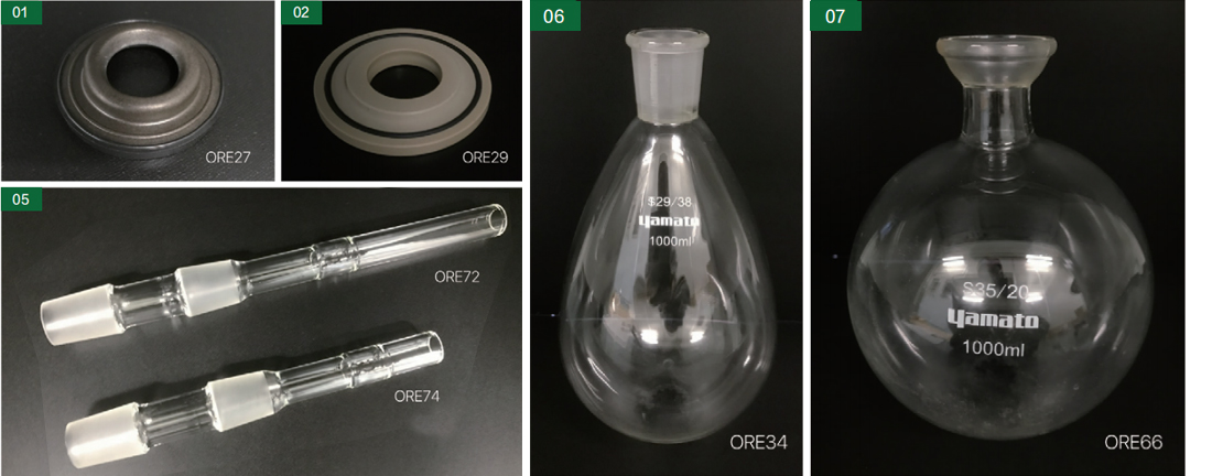 保證書、蒸餾燒瓶夾、回收燒瓶夾、真空密封圈、退瓶器(TS29用)、冷凝管隔熱材 |